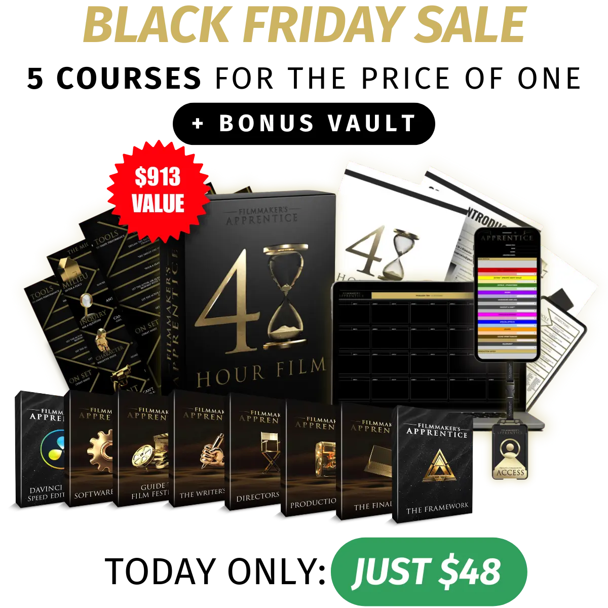 Filmmaker’s Apprentice skips the long, boring theory and gives you a fast, step-by-step system to go from idea → script → shoot → edit in just 48 hours (even as a total beginner).