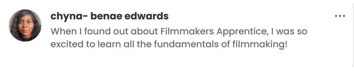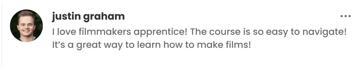 Filmmaker's Apprentice is a premium online filmmaking platform that aims to educate the next generation of filmmakers through experience based courses . We accelerate your filmmaking journey at a fraction of the cost and time associated with traditional film school and YouTube.