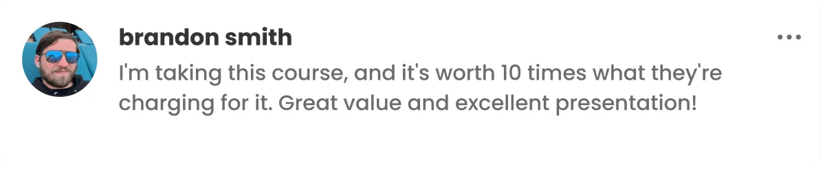 Just decide what is your time worth? This program will save you weeks of frustrated time searching for answers and rapidly increase your narrative filmmaking skills. For some - that's $ well spent! If your time isn't worth that yet... Stick to YouTube until it is!