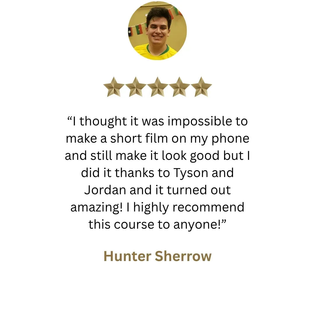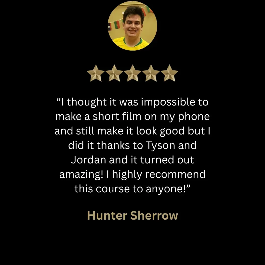 I thought it was impossible to make a short film on my phone and make it still look good, but this course helped me do it, and it turned out amazing! Thank you Tyson and Jordan!"