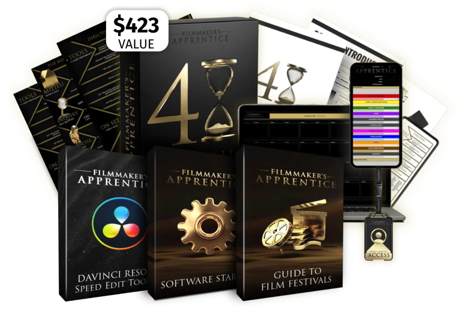 Filmmaker's Apprentice offers an impressive range of topics that include Screenwriting, Cinematography, Directing, Lighting, Color Correction, Post Production, and more!