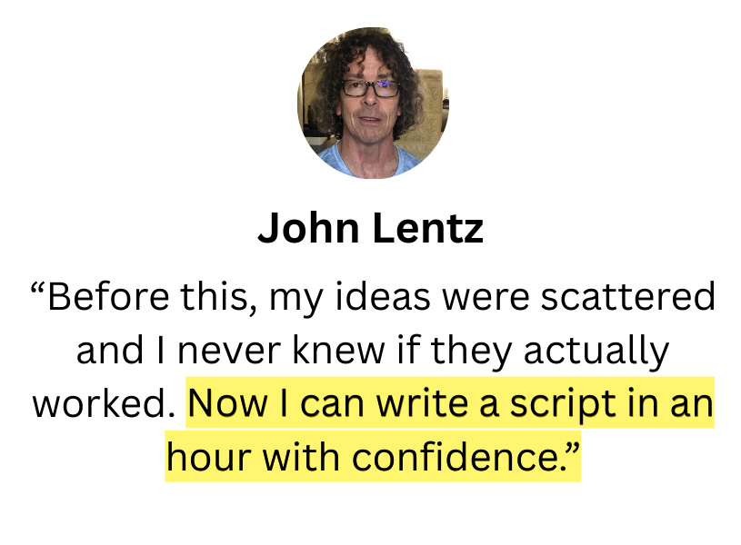 By Day 7, you’ll have a complete 3–15 page short film script, formatted properly and structured with tension and escalation.